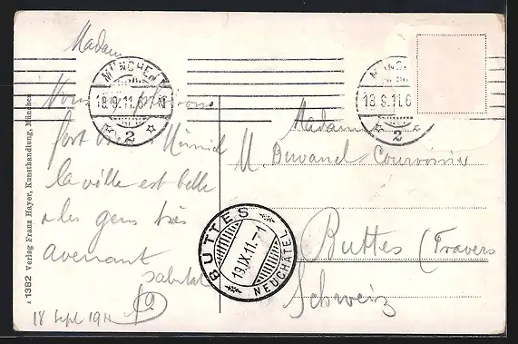 gelaufen 1911, Briefmarke entfernt, guter Zustand