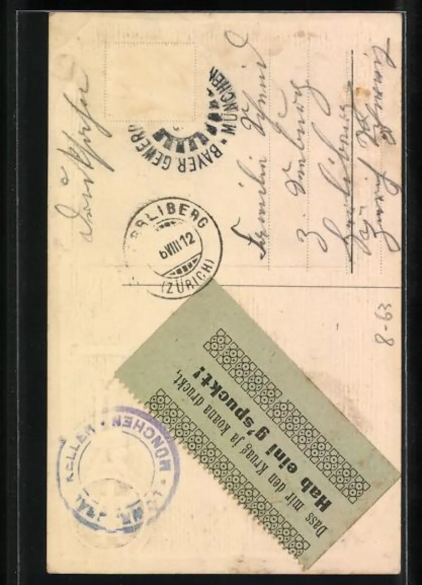 gelaufen 1912, rückseitig Klebe- und Papierreste, guter Zustand