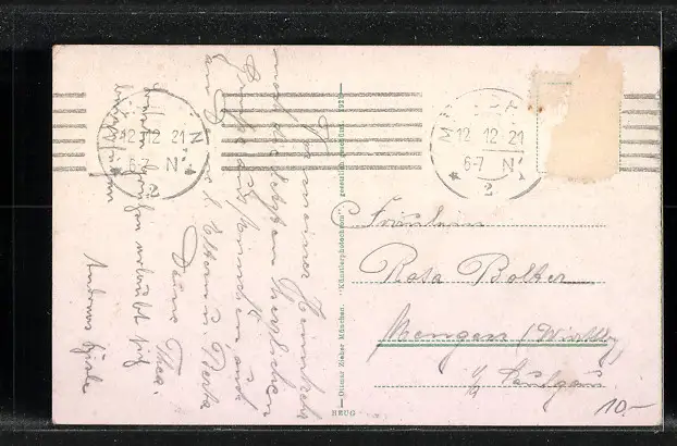 alte Ansichtskarte, gelaufen, Briefmarke entfernt, rückseitig Oberflächenschaden, guter Zustand