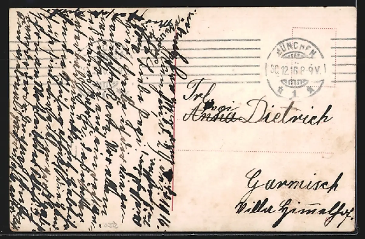 gelaufen 1916, Eckknicke li. unten u. re. oben, guter Zustand
