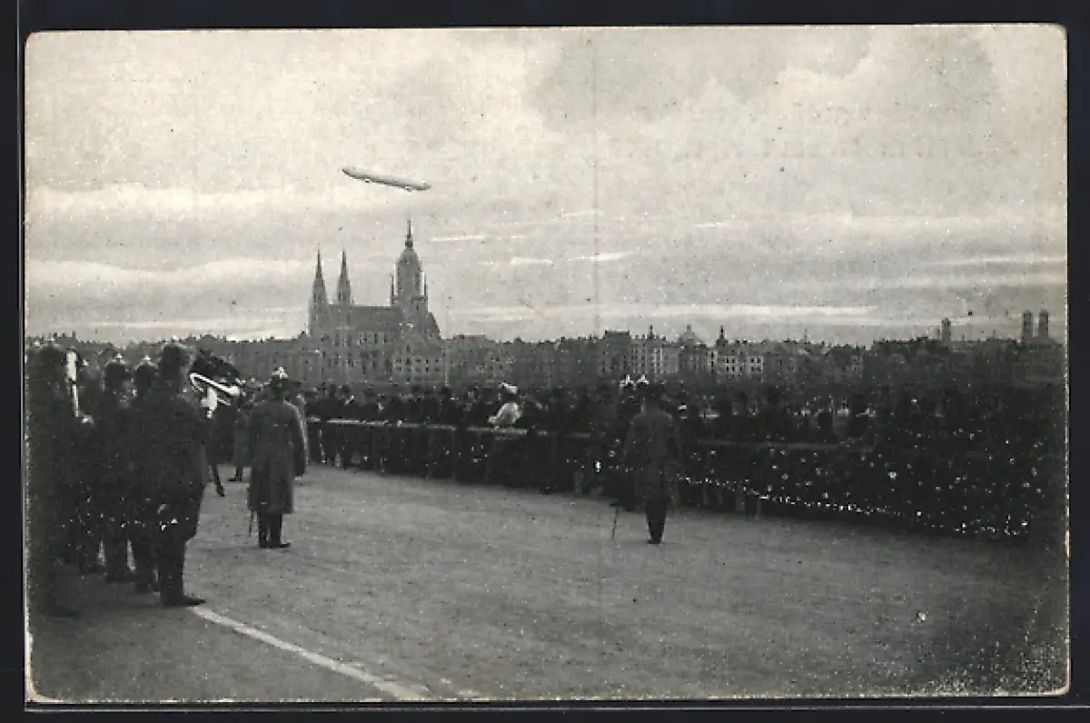 AK München, Zeppelins Fernfahrt, Ankunft des Zeppelin 1909