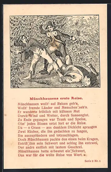 AK Münchhausens erste Reise, Münchhausen wollt` auf Reisen geh`n...