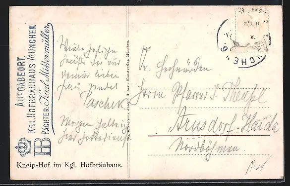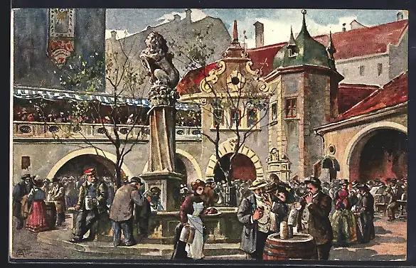 AK Münchner Hofbräuhaus, Gäste im Kneip-Hof