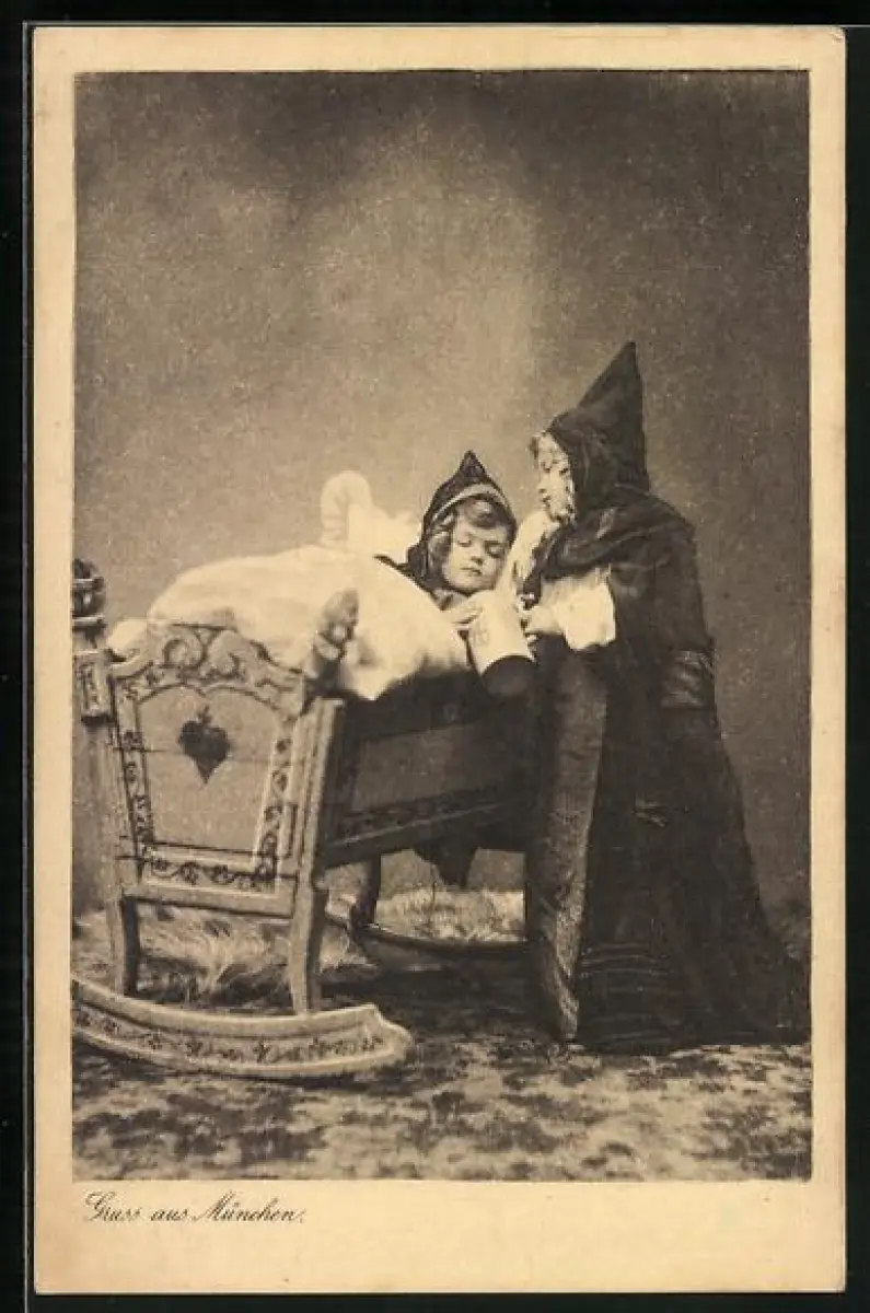 AK Münchner Kindl gibt Kindl in Wiege einen Schlaftrunk