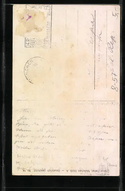 alte Ansichtskarte, gelaufen 1930, Briefmarke tw. entfernt, rückseitig Oberflächenschaden, Eckknicke oben, Oberflächenschaden, guter Zustand