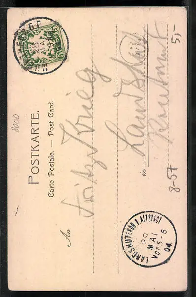 alte Ansichtskarte, gelaufen 1904, Stempelspur, guter Zustand