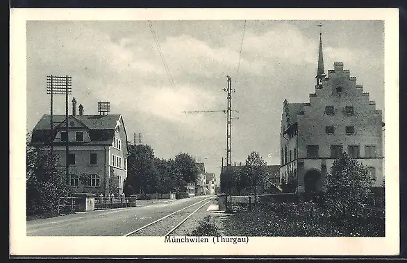 AK Münchwilen / Thurgau, Strassenpartie am Ortseingang