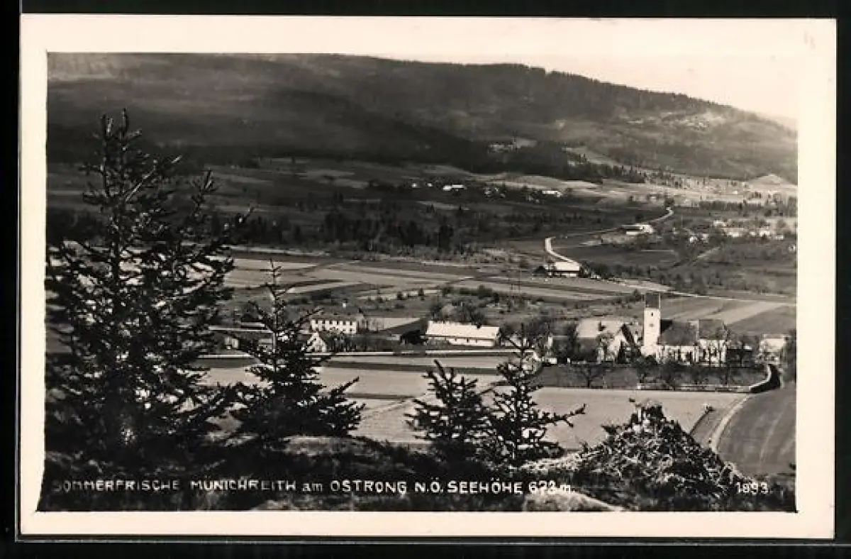 AK Münichreith am Ostrong, Gesamtansicht von einer Anhöhe aus