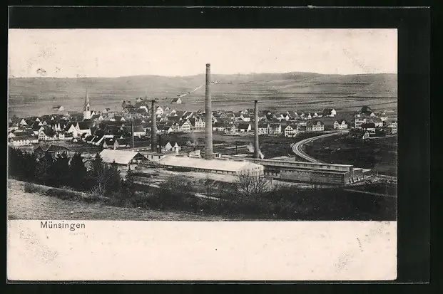 AK Münsingen, Teilansicht mit Fabrik