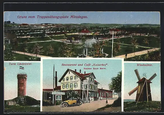 AK Münsingen, Truppenübungsplatz, Turm Lindequist, Windmühle