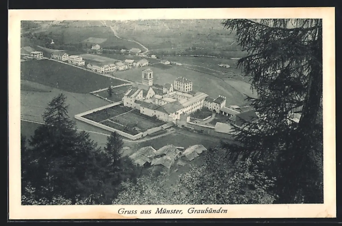 AK Münster /Graubünden, Ortsansicht aus der Vogelschau