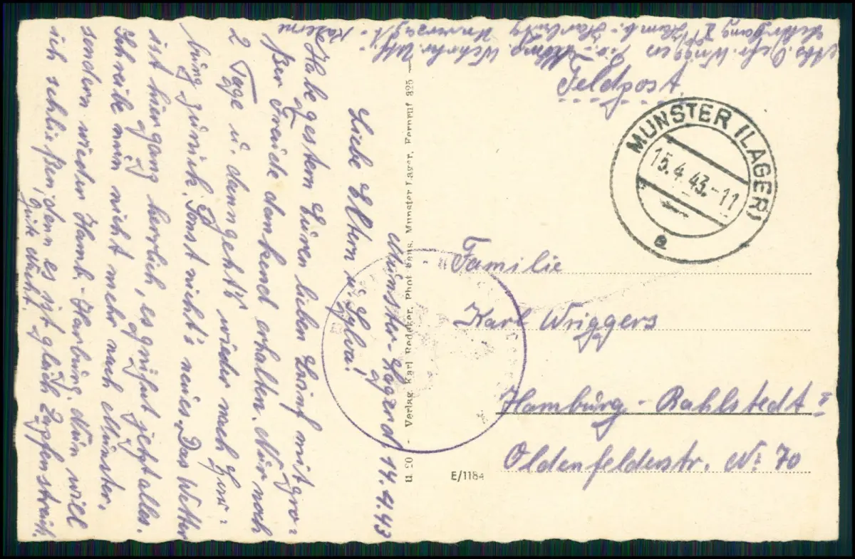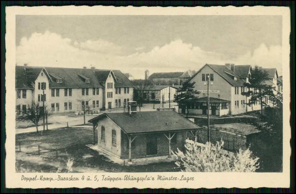 AK Münster-Lager Truppenübungsplatz Doppel-Kompanie Baracken 1943 Feldpost gel.