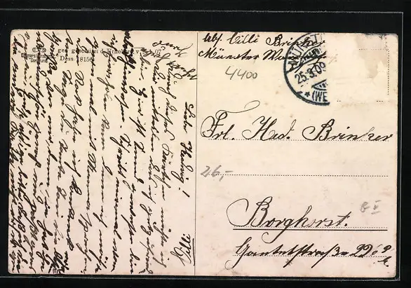 alte Ansichtskarte, gelaufen 1909, Briefmarke entfernt, rückseitig Oberflächenschaden, guter Zustand