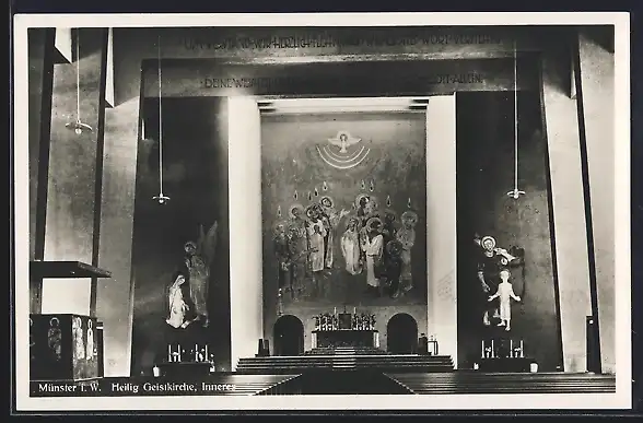 AK Münster i. W., Innenansicht der Heilig Geistkirche mit dem Altar