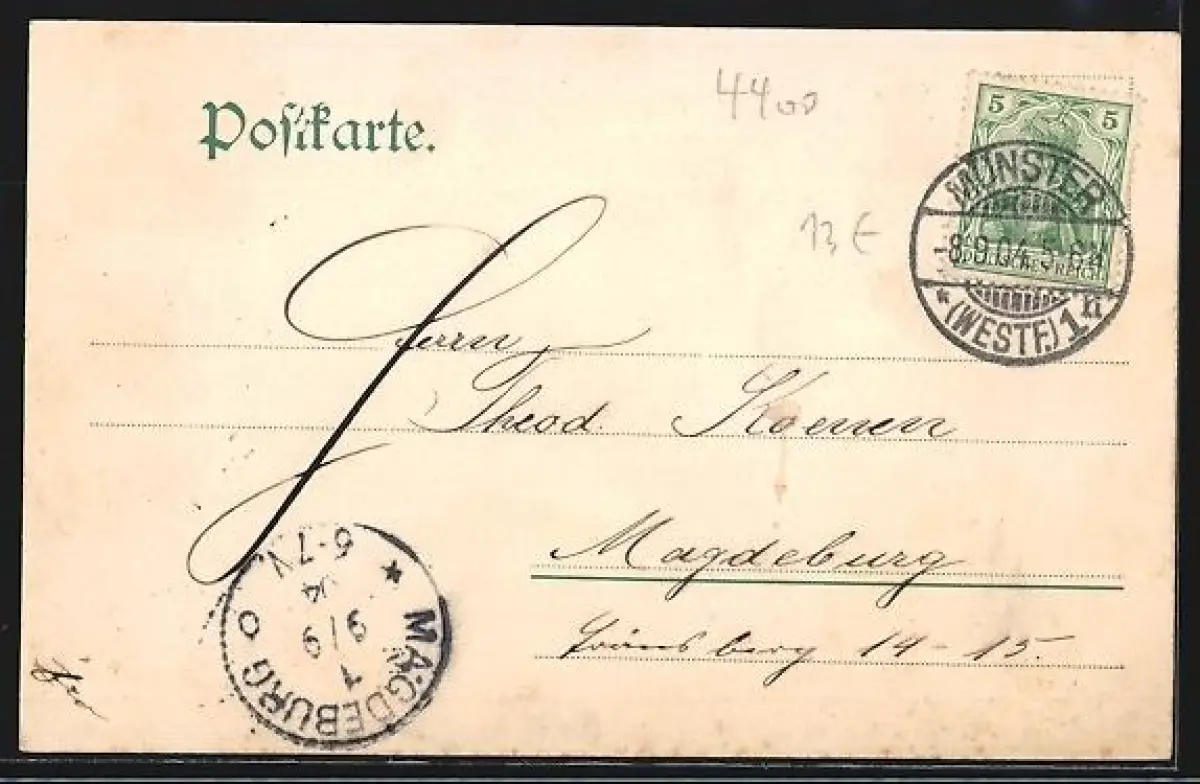 alte Ansichtskarte, gelaufen 1904, Stempelspur, guter Zustand