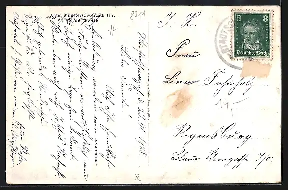 alte Ansichtskarte, gelaufen 1928, rückseitig Oberflächenschaden, guter Zustand