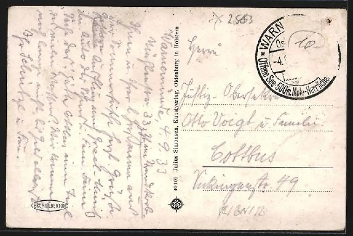 alte Ansichtskarte, gelaufen 1933, Briefmarke entfernt, Stempelspur, guter Zustand