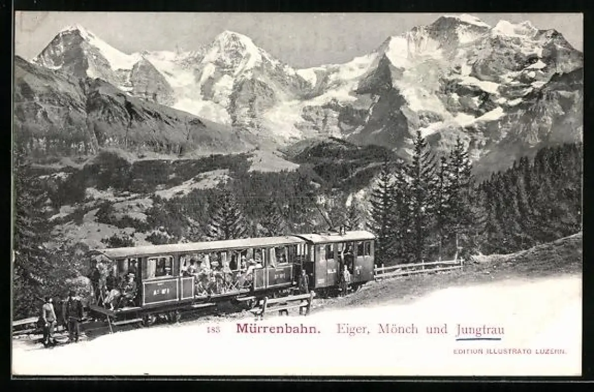 AK Mürrenbahn, Ansicht mit Eiger, Mönch u. Jungfrau