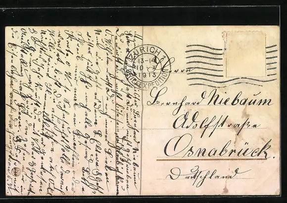 alte Ansichtskarte, gelaufen, Briefmarke entfernt, guter Zustand
