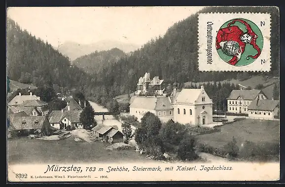 AK Mürzsteg, Teilansicht mit Kaiserl. Jagdschloss