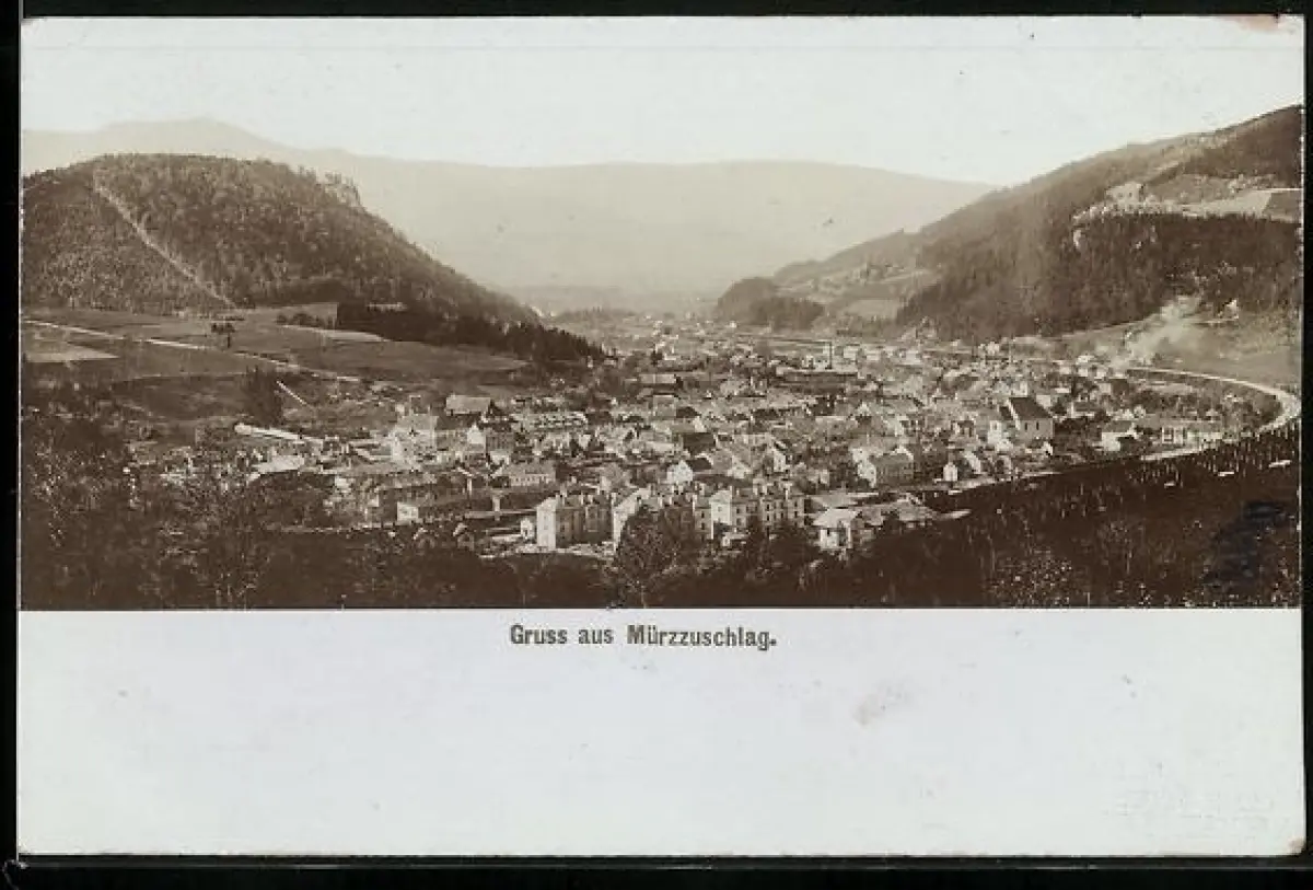 AK Mürzzuschlag, Ortspanorama vom Berg aus gesehen
