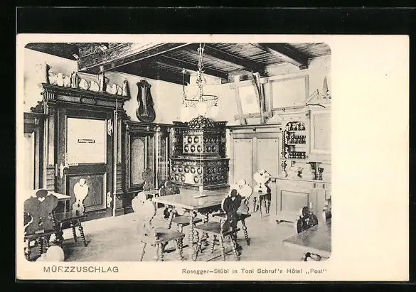 AK Mürzzuschlag, Rosegger-Stübl in Toni Schrufs Hotel Post