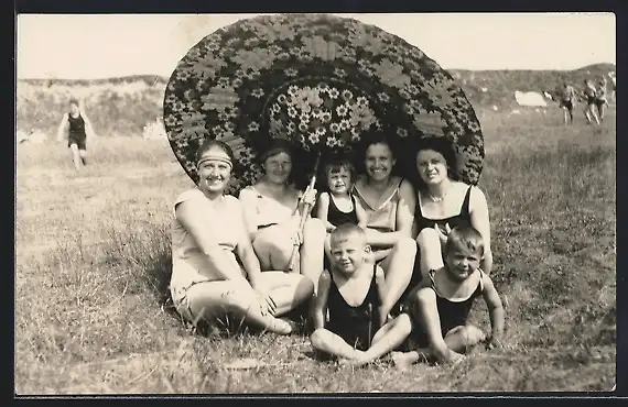 AK Mütter mit Kindern in Bademode unter einem Schirm