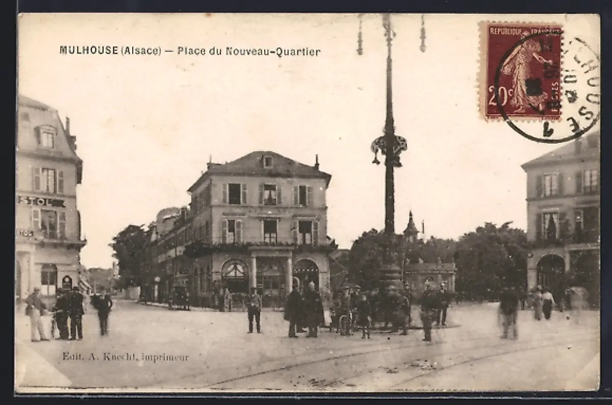 AK Mulhouse /Alsace, Place du Nouveau-Quartier avec passants et architecture urbaine