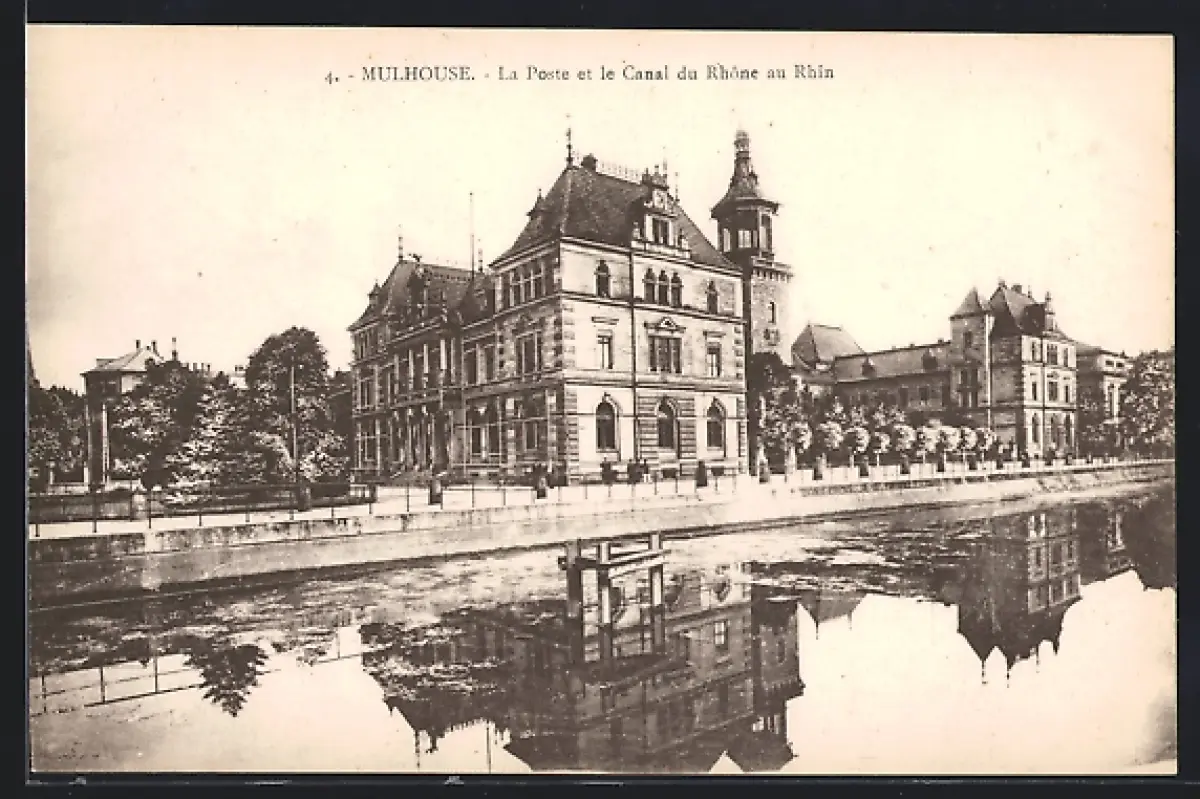 AK Mulhouse, La Poste et le Canal du Rhone au Rhin