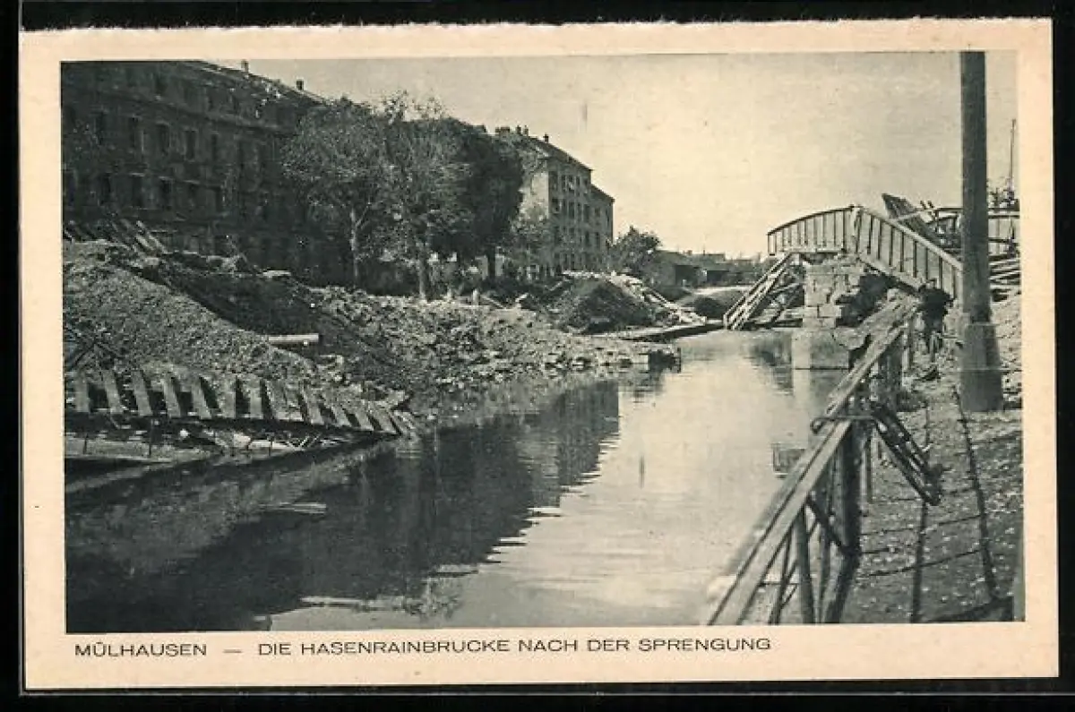 AK Mulhouse-Mülhausen, Die Hasenrainbrücke nach der Sprengung