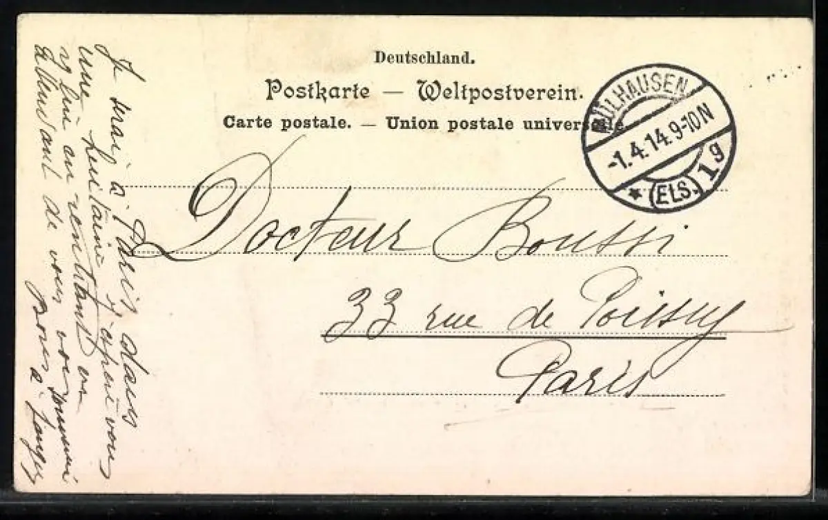 alte Ansichtskarte, gelaufen 1914, Briefmarke entfernt, guter Zustand