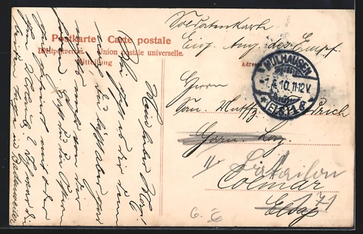 alte Ansichtskarte, gelaufen 1910, Stempelspur, guter Zustand