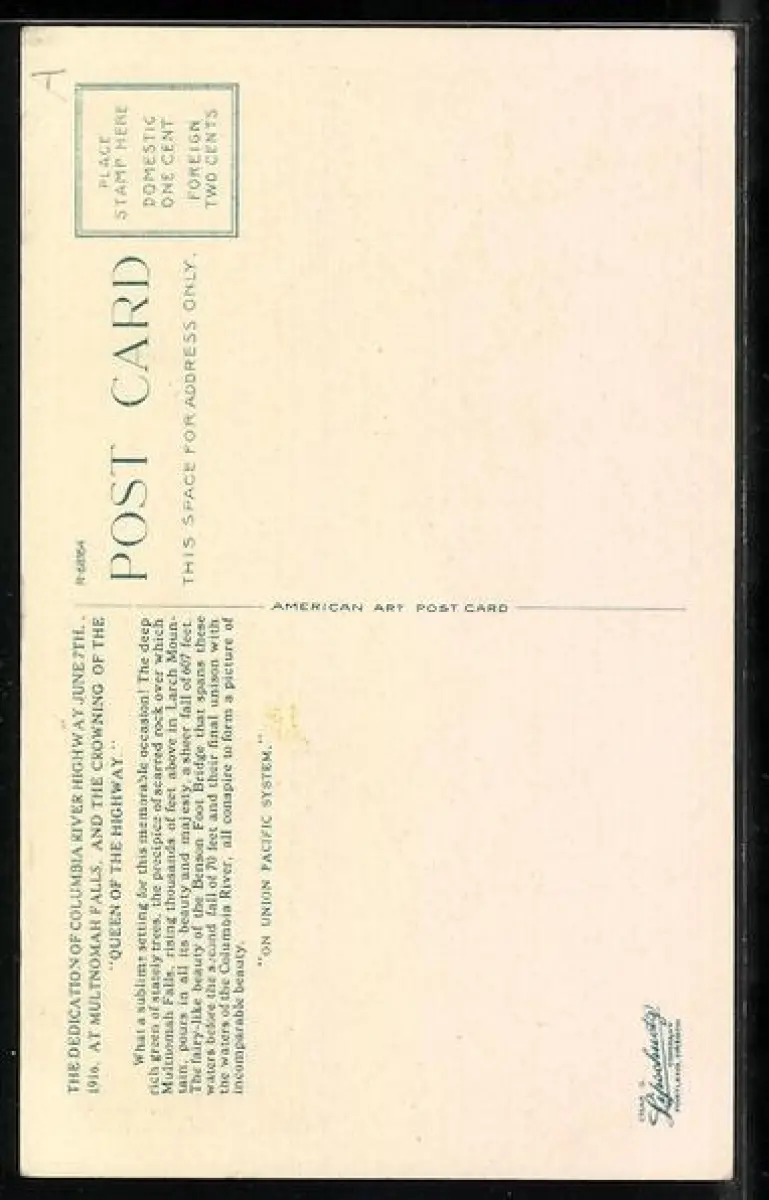 AK Multnomah Falls, OR, The Dedication of Columbia River Highway 1916