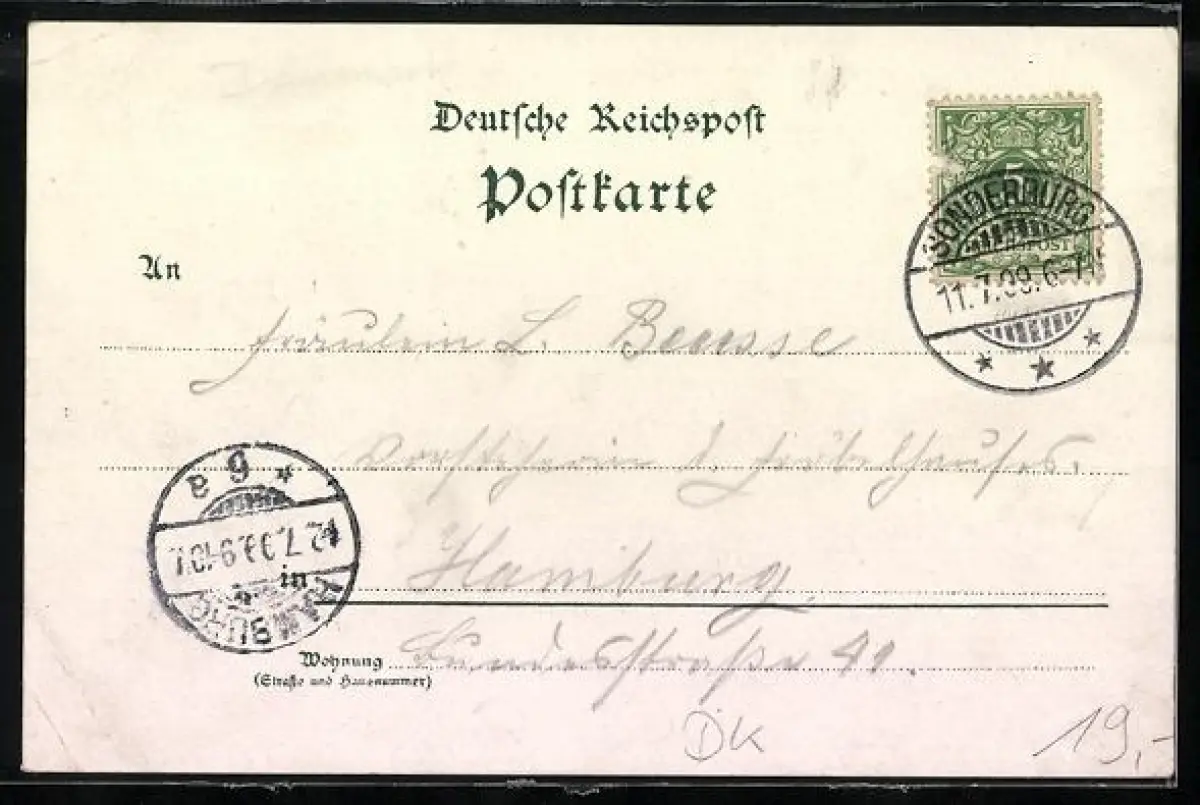 alte Ansichtskarte, gelaufen 1899, Eckknicke rechts, guter Zustand