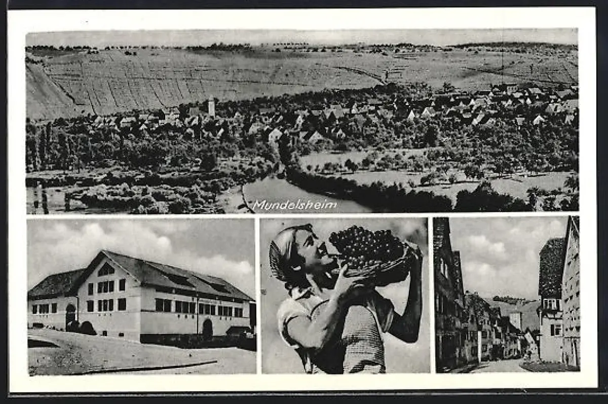 AK Mundelsheim, Ortsansicht, Winzerin mit Trauben