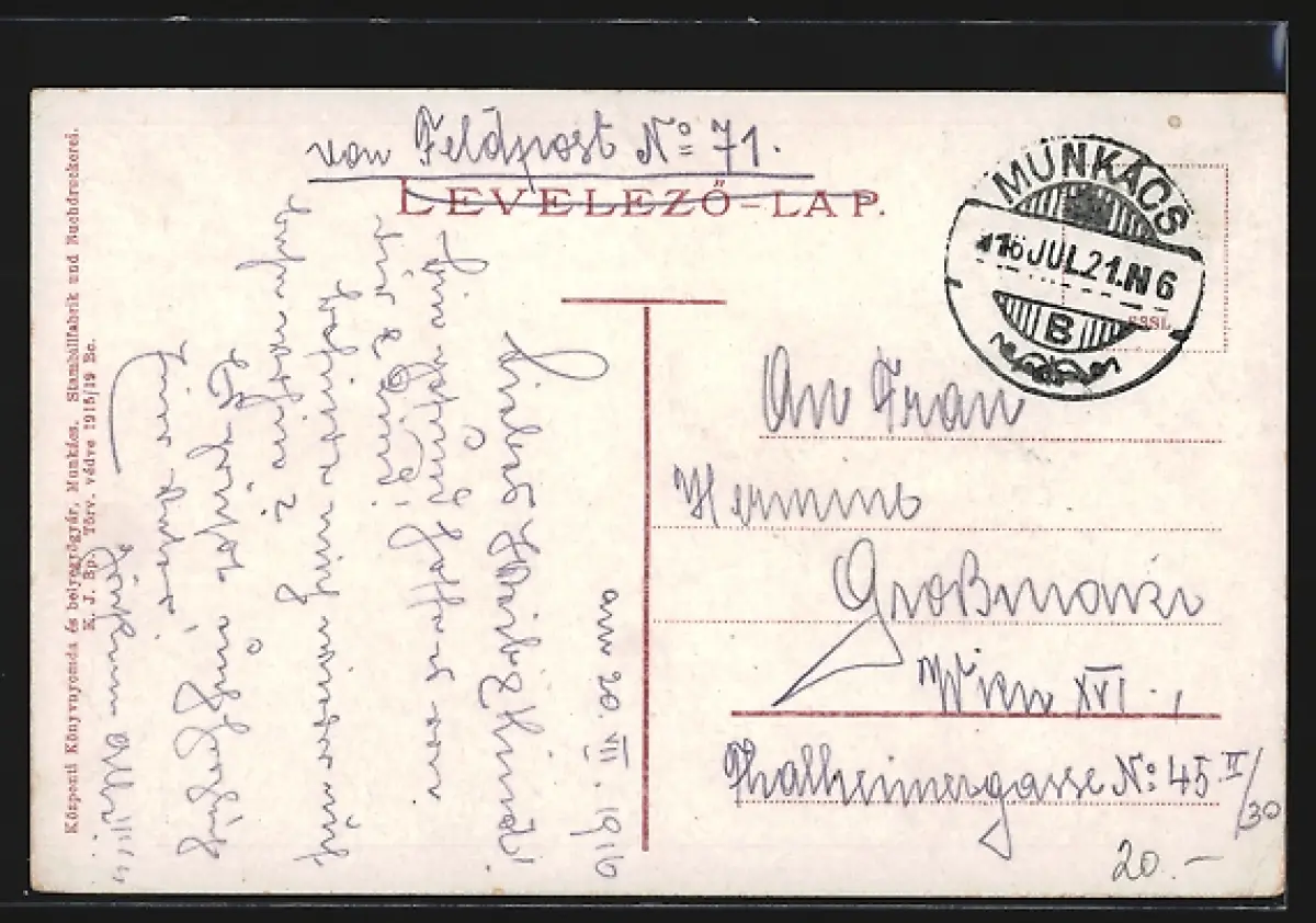 gelaufen 1916, Eckknick re. oben, guter Zustand