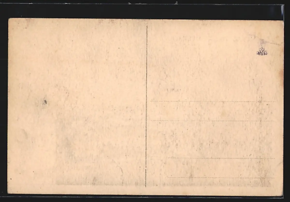 Personenbezogene Daten auf der Rückseite der Karte wurden durch blauen Textmarker unkenntlich gemacht. Die blauen Stellen sind auf die Vorderseite durchgeweicht und wirken sich negativ auf das Postkartenfoto aus