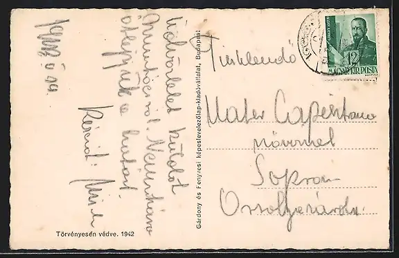 Personenbezogene Daten auf der Rückseite der Karte wurden durch blauen Textmarker unkenntlich gemacht. Die blauen Stellen sind auf die Vorderseite durchgeweicht und wirken sich negativ auf das Postkartenfoto aus