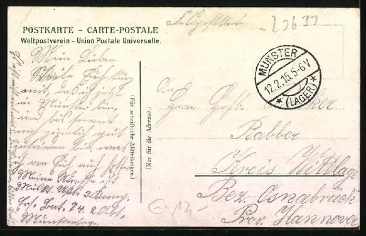 alte Ansichtskarte, gelaufen 1915 als Feldpost, Eckknicke rechts, guter Zustand