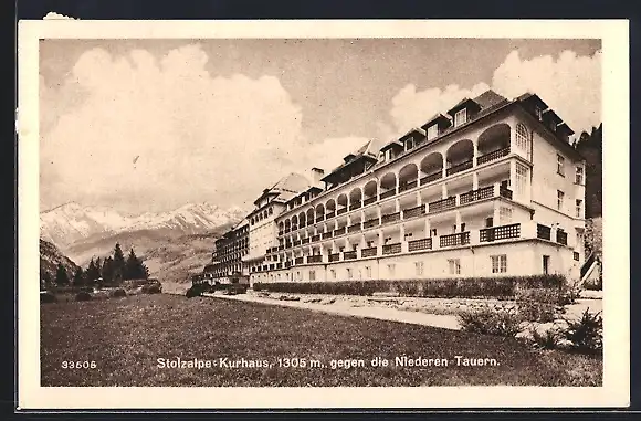 AK Murau /Stmk., Stolzalpe, Kurhaus gegen die Niederen Tauern