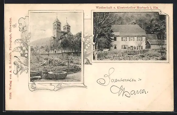 AK Murbach i. Els., Gasthaus zum Klosterkeller, das Kloster