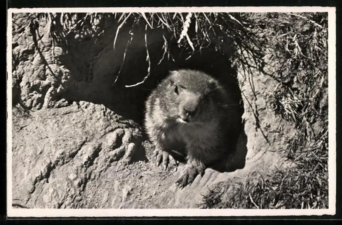 AK Murmeltier in den Bündner Alpen, am Eingang des Baus
