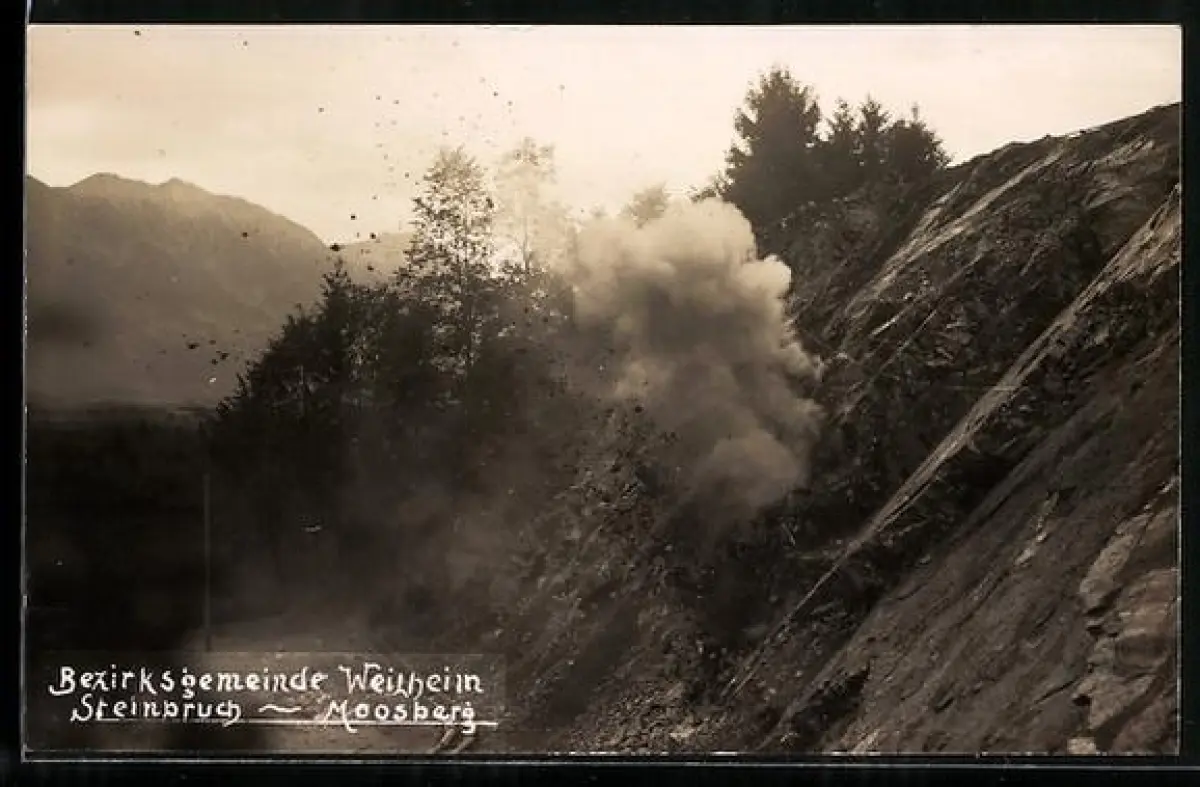 AK Murnau, Steinbruch Moosberg während einer Sprengung