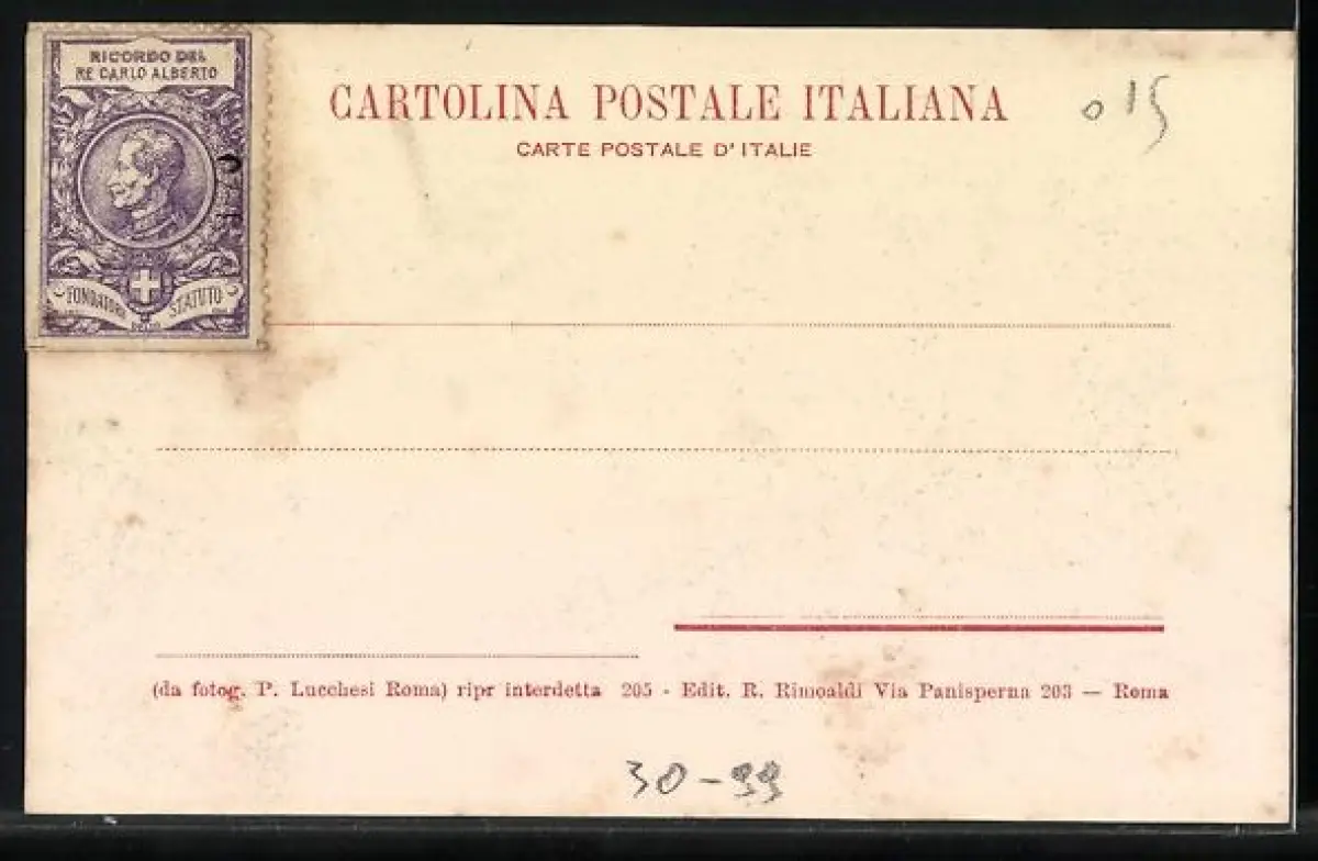 Personenbezogene Daten auf der Rückseite der Karte wurden durch blauen Textmarker unkenntlich gemacht. Die blauen Stellen sind auf die Vorderseite durchgeweicht und wirken sich negativ auf das Postkartenfoto aus