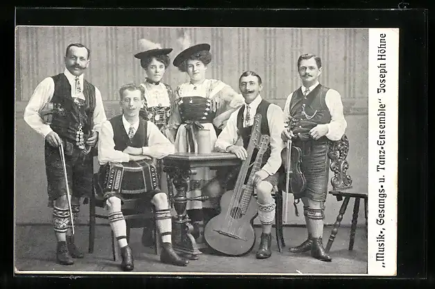 AK Musik-, Gesangs- u. Tanz-Ensemble von Joseph Höhne in Trachten, mit Akkordeon, Geigen