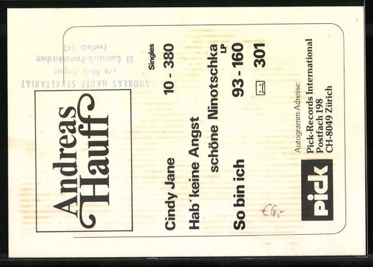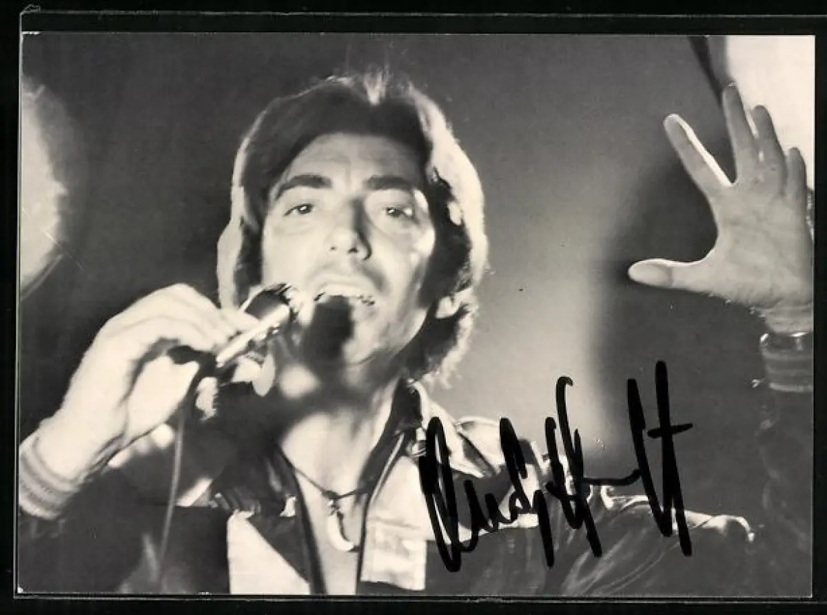 AK Musiker Andreas Hauff singend im Porträt, Autograph