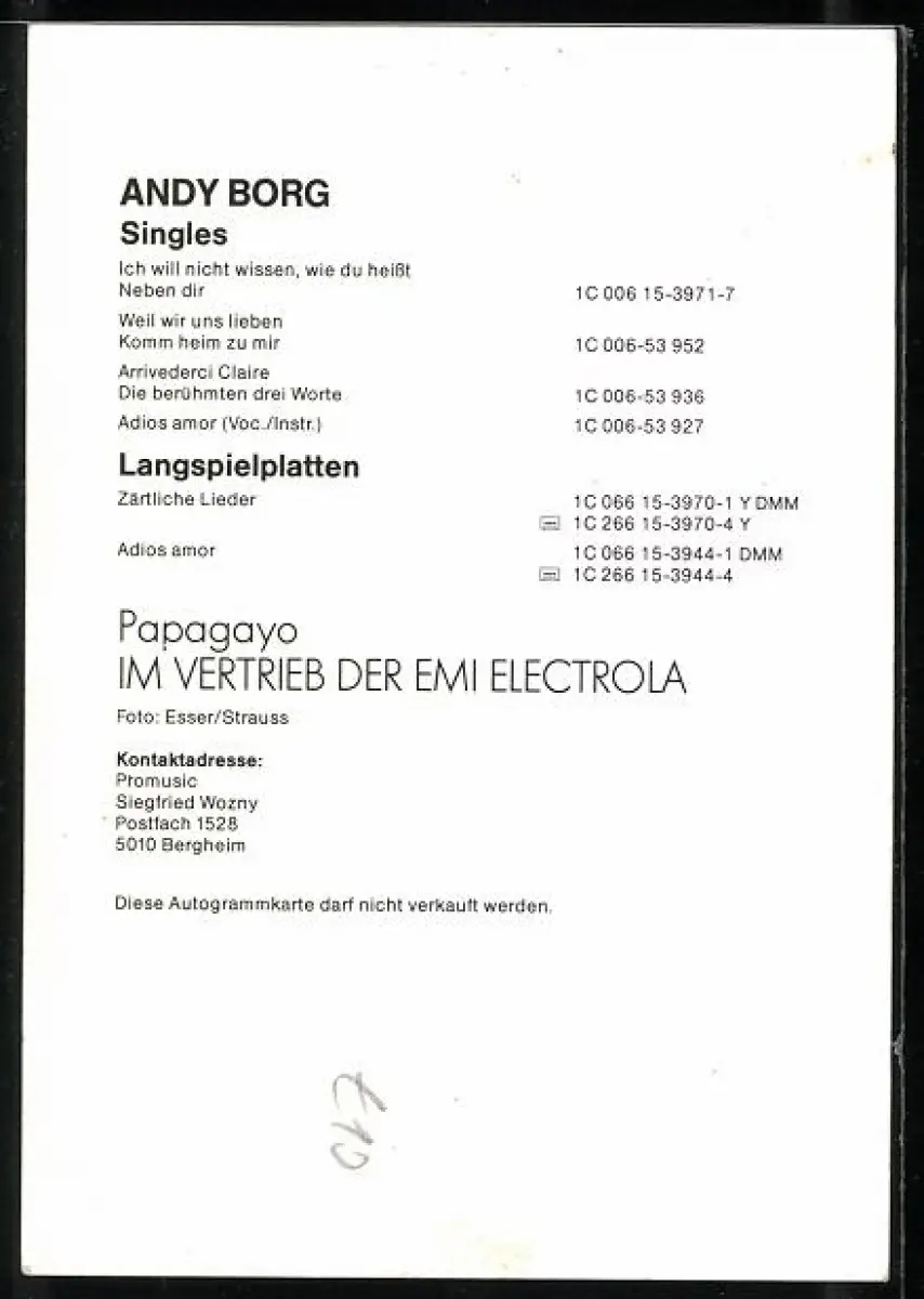 AK Musiker Andy Borg im blauen Hemd, Autograph