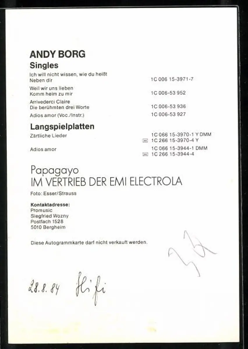 AK Musiker Andy Borg in die Kamera blickend, Autograph