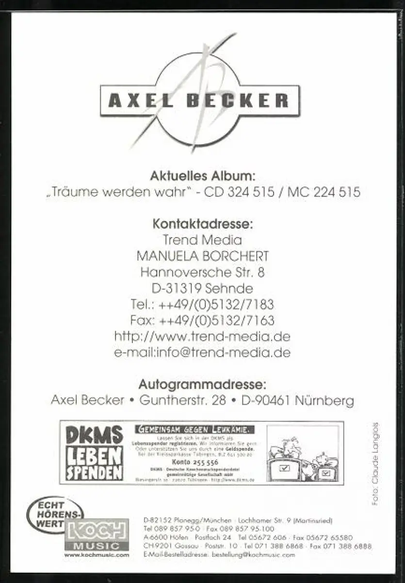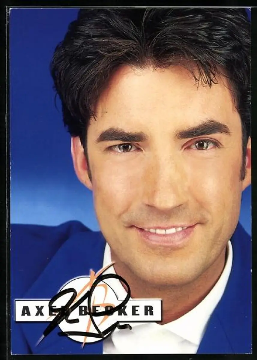 AK Musiker Axel Becker lächelnd in Kamera blickend, Autograph