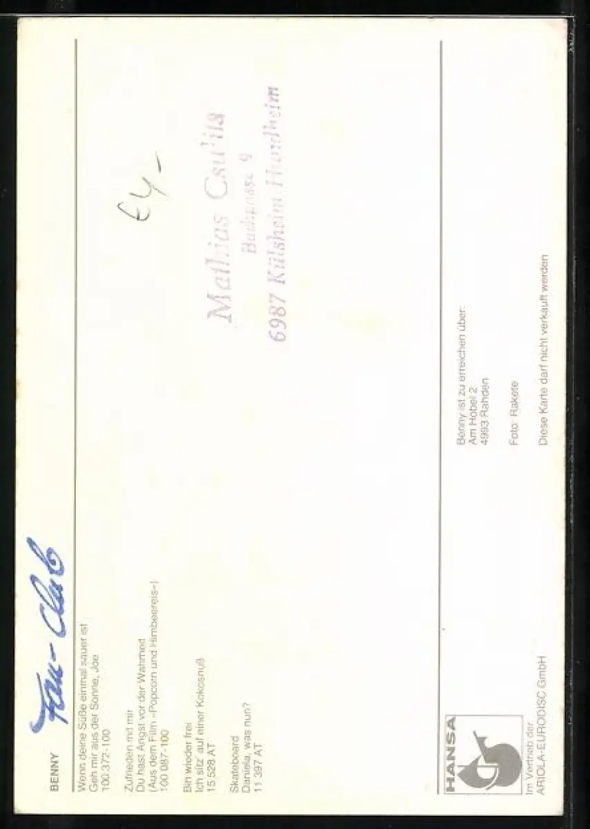 AK Musiker Benny mit aufgestütztem Kopf, Autograph